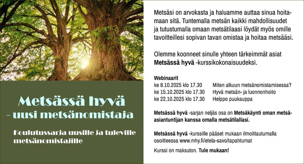 Metsässä hyvä -kurssi tarjoaa tietoa tulevalle metsänomistajalle